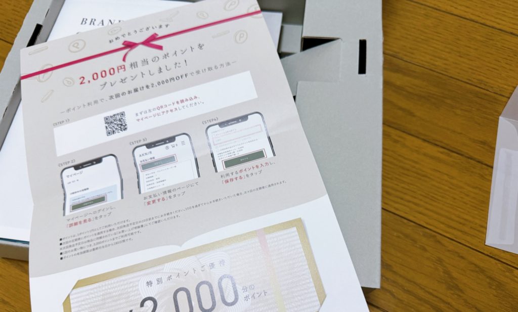 初回購入で2,000円もプレゼントされるので、次回使います。